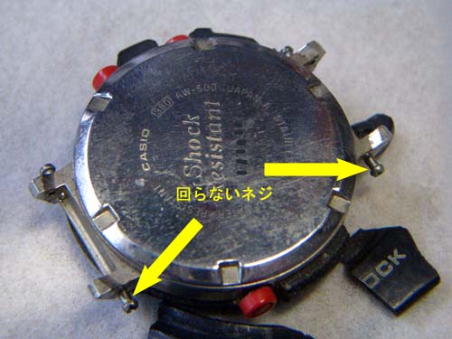 画像はG-SHOCKで樹脂ケースタイプでコネジが4本で締め付けられているタイプ。